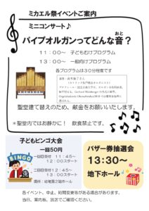 聖ミカエル祭バザーで行われるイベントをお知らせします。 We will inform events of St. Michael Festival Bazzar.