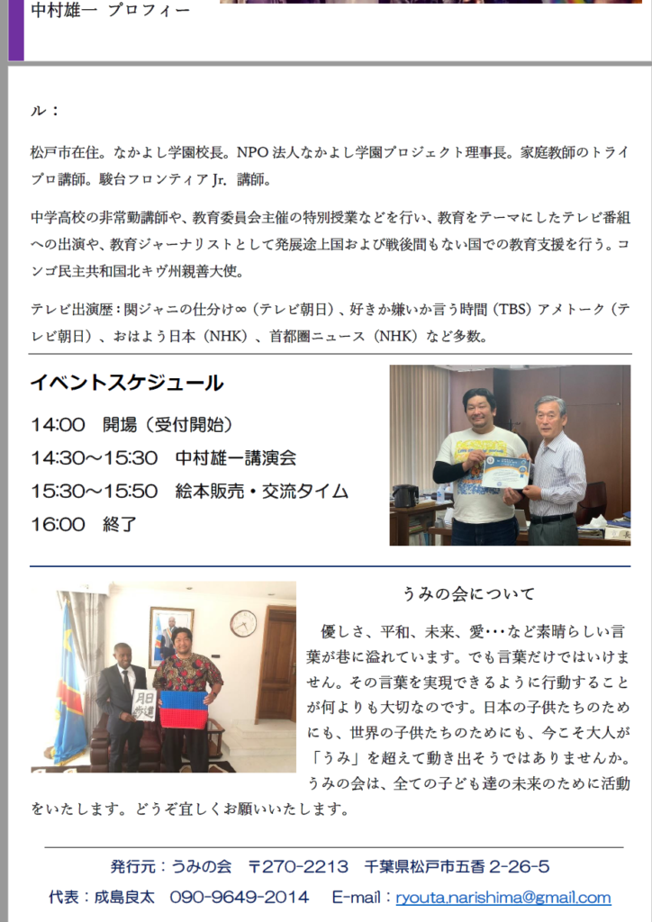 なかよし学園中村雄一校長講演会のおしらせ Lecture meeting of Nakayoshi Gakuen President NAKAMURA Yuichi